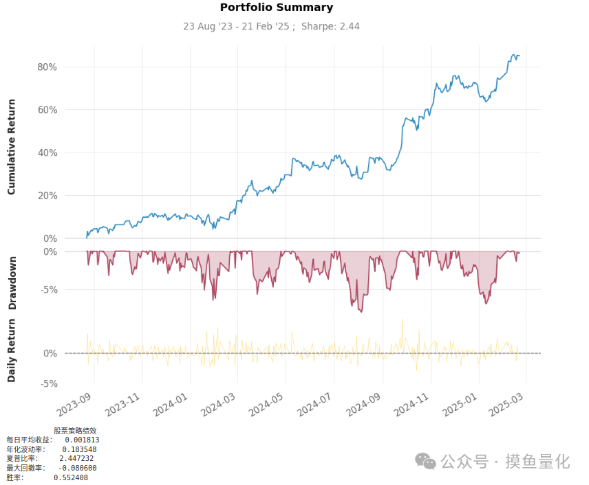 目前,全自动量化包括了QMT和PTRADE两种模式,摸鱼量化团队对于这两种模式,都提供了专业量化支持,包括了策略模型,系统搭建到专业讲解,并且策略穿越牛熊,做到高夏普,低回撤。