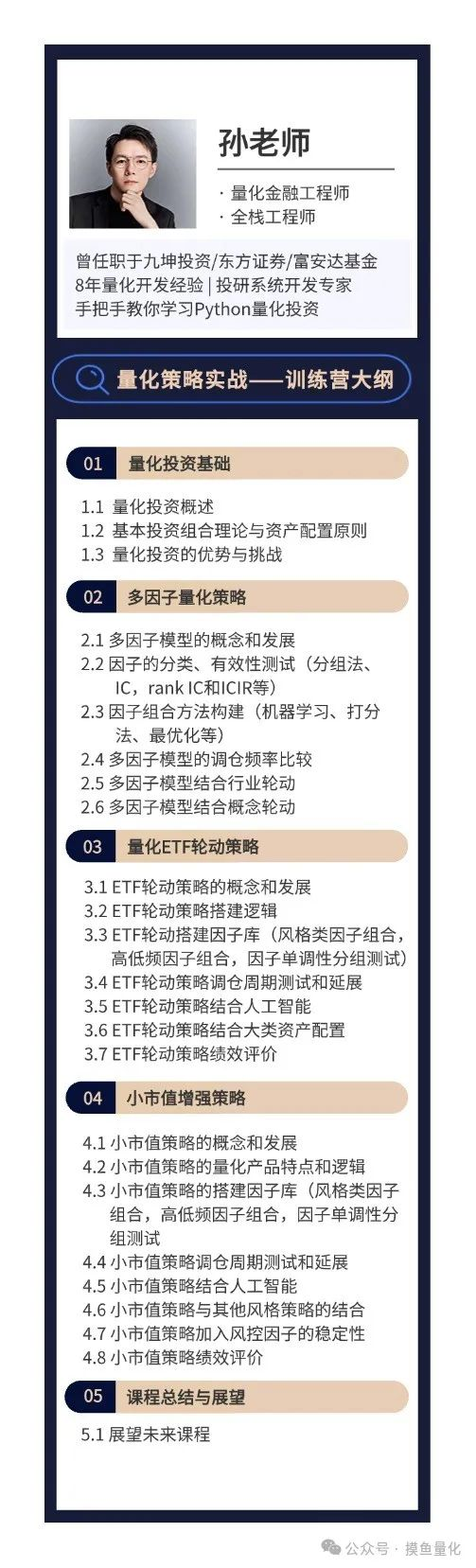 课程最注重实用性,将从量化投资的实际应用出发,贴近市场的实践。不仅仅讲解工具使用,更是